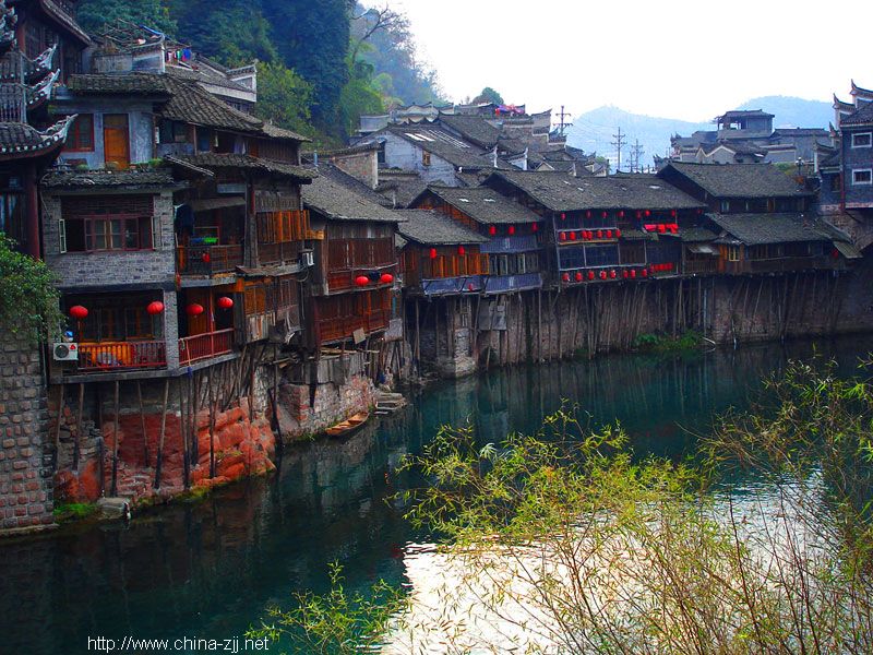 湖南鳳凰古城始建于清康熙四十三年〔1704年〕,歷經(jīng)300多年的風(fēng)雨滄桑,古貌猶存,F(xiàn)東門和北門古城樓尚在。城內(nèi)青石板街道,江邊木結(jié)構(gòu)吊腳樓,以及朝陽(yáng)宮、古城博物館、楊家祠堂、沈從文故居、熊希齡故居、天王廟、大成殿、萬(wàn)壽宮等建筑,無(wú)不具古城特色。古城以古街為中軸,連接無(wú)數(shù)小巷,溝通全城。古街是一條縱向隨勢(shì)成線、橫向交錯(cuò)鋪砌的青石板路,自古以來(lái)便是熱鬧的集市,如今更加生機(jī)勃勃。鳳凰古城的標(biāo)志性建筑之一虹橋,原名臥虹橋,歷史悠久。鳳凰古城北門城樓本名“碧輝門”,采用紅砂條石筑砌,既有軍事防御作用,又有城市防洪功能,是古城一道堅(jiān)固的屏障。鳳凰古街兩邊建筑飛檐斗拱,店鋪中陳設(shè)著琳瑯滿目的民族工藝品,濃濃的古意古韻,透出古街深厚的民族文化底蘊(yùn)。