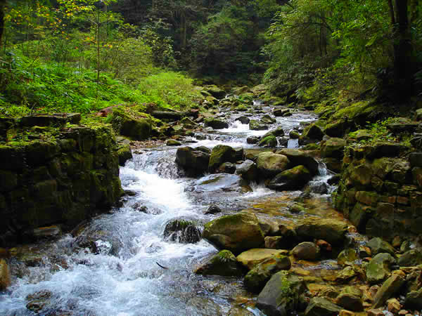 杉刀溝盡頭,有一抹泉水從200多米高的崖頂飄然而下,仿佛一匹白色長(zhǎng)練自天而降。飛瀑下臨深潭,綠水泱泱,水霧漫漫,睛雨交加之日,時(shí)有彩虹飛升。每當(dāng)山洪瀑發(fā),瀑布猶如一巨龍,飛騰傾瀉,聲若巨雷,蔚為壯觀。