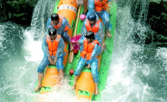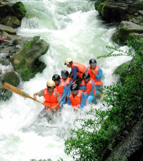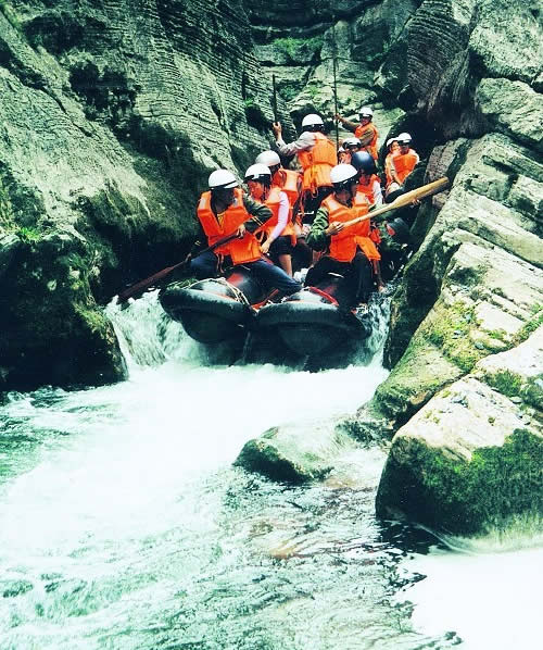 西門峽漂流全程6公里,屬萬溶江流域,它發(fā)源于兩頭羊自然保護區(qū)的群山之中;沿途危崖夾峙,樹木蔥榮,水質(zhì)清澈、急流、險灘星落棋布。共有虎跳澗、白龍灘、臥龍灘、青龍峽、鬼見愁、龍王灘等急流險灘30余個。其中以青龍灘最為著名,它全長400米,落差20余米。它和龍王灘一道堪稱國內(nèi)漂流之經(jīng)典。