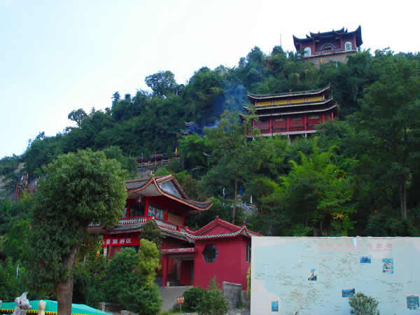 紫霞觀 紫霞觀始建于明朝嘉靖年間,近500年的歷史,在戰(zhàn)亂時期收到不同程度的破壞。紫霞觀是1992年因旅游事業(yè)的發(fā)展,教徒的信教,經(jīng)政府的批準(zhǔn),由各地的善男信女共同捐資,當(dāng)?shù)卣畵芸顢U(kuò)建起來的。道觀共有大小殿廟30余座,計5殿、3宮、2亭、2廟、1閣、八仙山、仙人足跡石、中華同心鎖等景點。中國著名書法家沈鵬先生為紫霞觀題寫了觀名,觀內(nèi)有國內(nèi)外著名書法家的題詞、碑刻等宗教文物,以及老子教祖講經(jīng)說法渡化圖一百余幅。