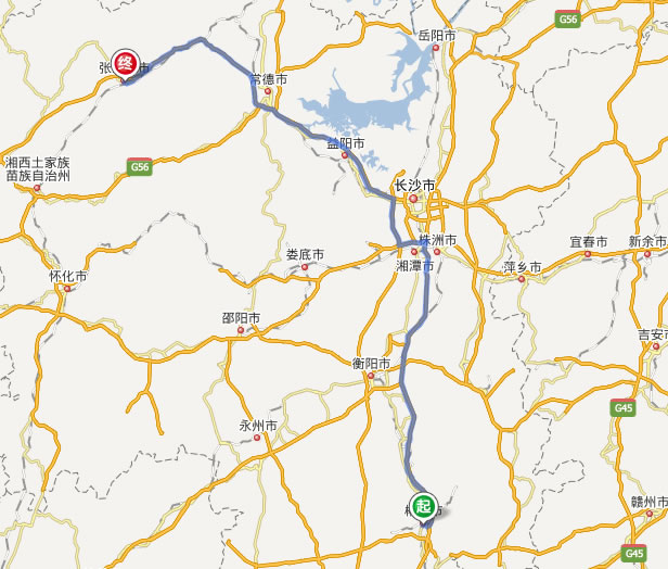 左右,沿途經過郴州——耒陽市——衡山縣——株洲市——長沙——益陽——常德——慈利——張家界市。