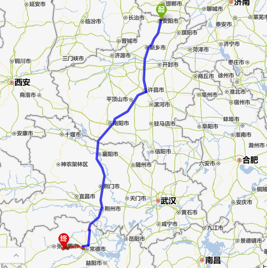 安陽去張家界自駕車自助游線路圖全程高速):