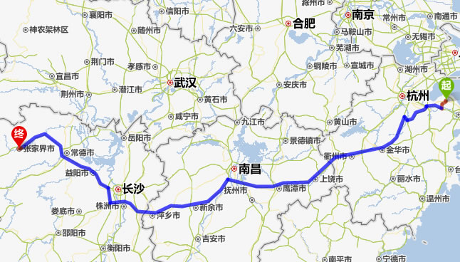 現(xiàn)在位置:張家界旅行社->交通指南->自駕車路線 -> 慈溪到張家界旅游自駕車線路,慈溪去張家界自己開車要多長時間,有多少公里