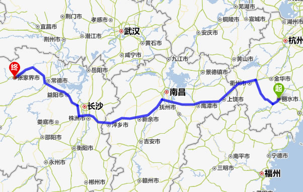 麗水去張家界自駕車自助游線路圖全程高速):