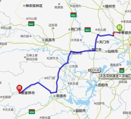 現(xiàn)在位置:張家界旅行社->交通指南->自駕車路線 -> 孝感到張家界旅游自駕車線路-孝感去張家界自己開車要多長時(shí)間,有多少公里