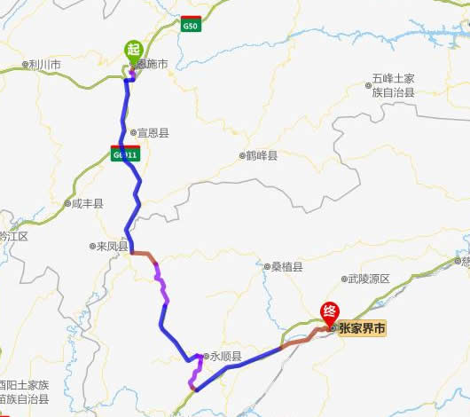 恩施去張家界自駕車(chē)自助游線路圖全程高速):