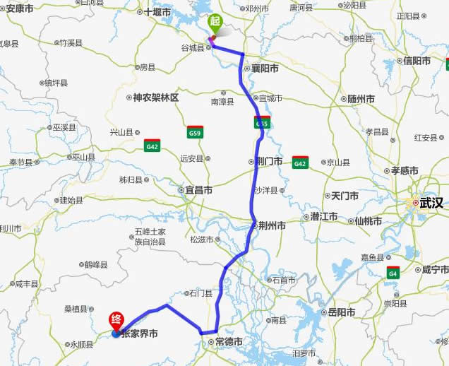 老河口去張家界自駕車(chē)自助游線路圖全程高速):