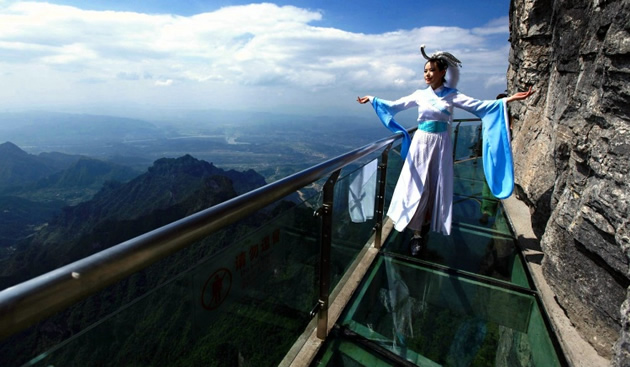 【張家界大峽谷玻璃橋】號稱世界最長、最高的全透明玻璃橋,玻璃橋總長430米、寬6米,橋面距谷底約300米,可站800人。橋面全部采用透明玻璃鋪設(shè),橋中心有全球最高的蹦極臺,整個(gè)工程無鋼筋支架,是一種全玻璃結(jié)構(gòu)的橋梁。玻璃橋建成后,將成為世界首座斜拉式高山峽谷玻璃橋;并創(chuàng)下世界最高最長玻璃橋、首次使用新型復(fù)合材料建造橋梁等多項(xiàng)世界之最!
