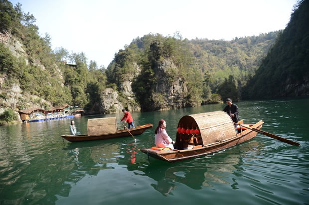 “在高峽平湖中,我們看到了張家界山水的純凈,也感受了這里人文的多彩!币慌鷣碜蕴﹪娜A裔游客當(dāng)天游覽景區(qū)后開心地說。在他們眼中,寶峰湖的春天風(fēng)景獨(dú)好,四周山巒山花競放,五顏六色絢麗無比,就連湖面倒影也十分迷人。而導(dǎo)游員熱情洋溢的講解和山歌船飛出的原生態(tài)民歌,以及烏篷船上身著民族服裝的阿哥阿妹,都是他們張家界之旅不容錯過的人文風(fēng)景。