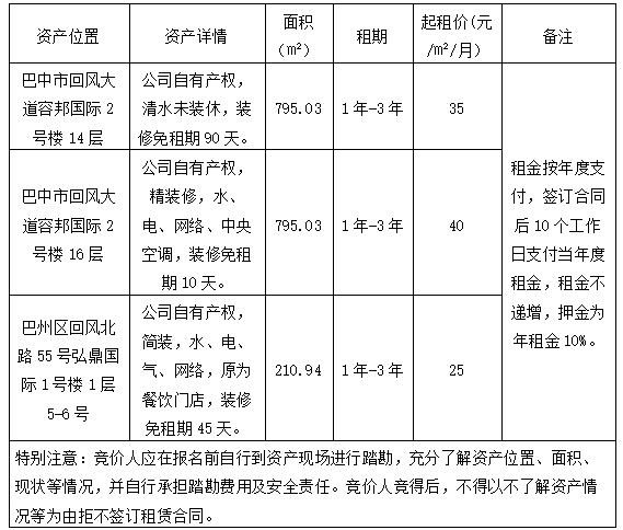 巴中自然資源投資集團(tuán)有限公司資產(chǎn)招租公告